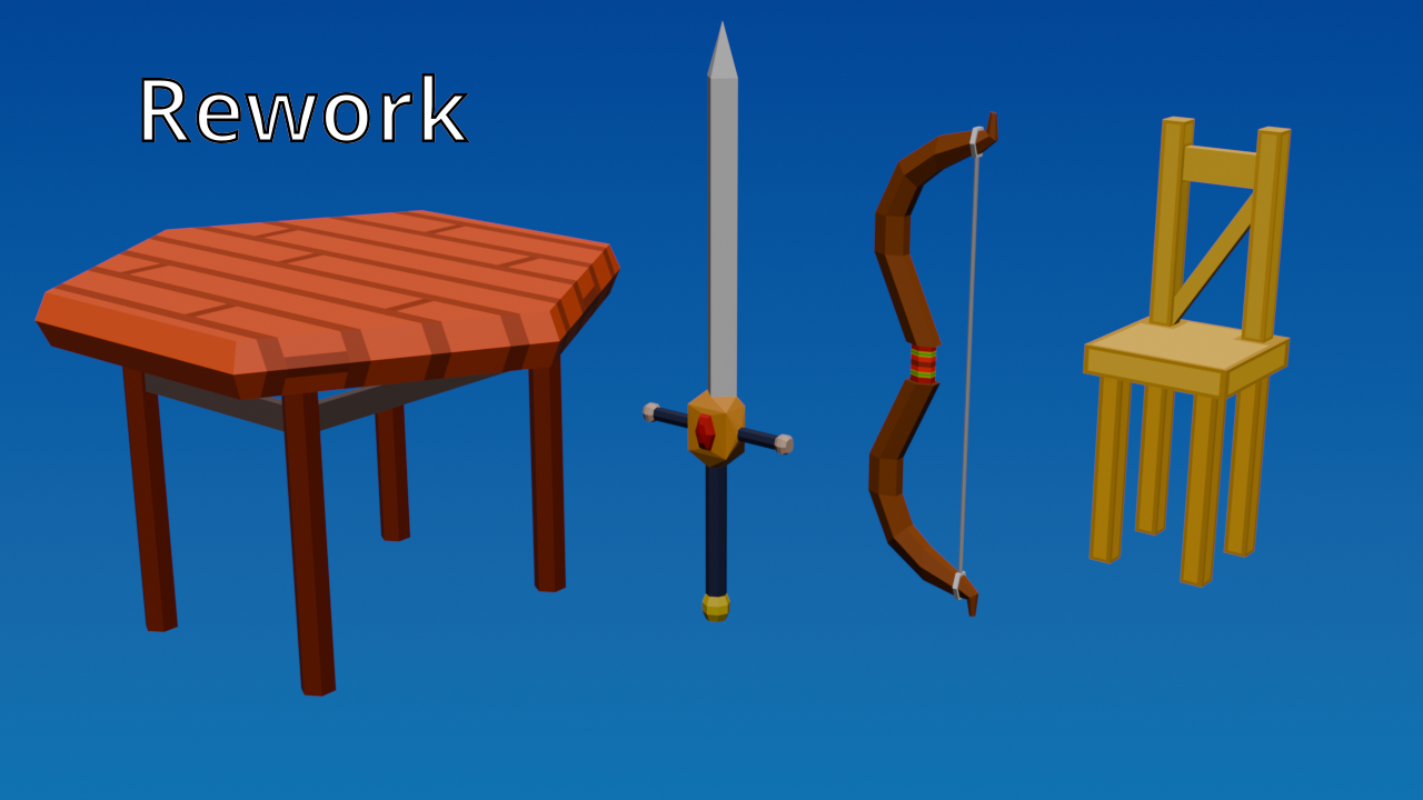 Rework: 4 items have been updated, the table, chair, sword and bow.